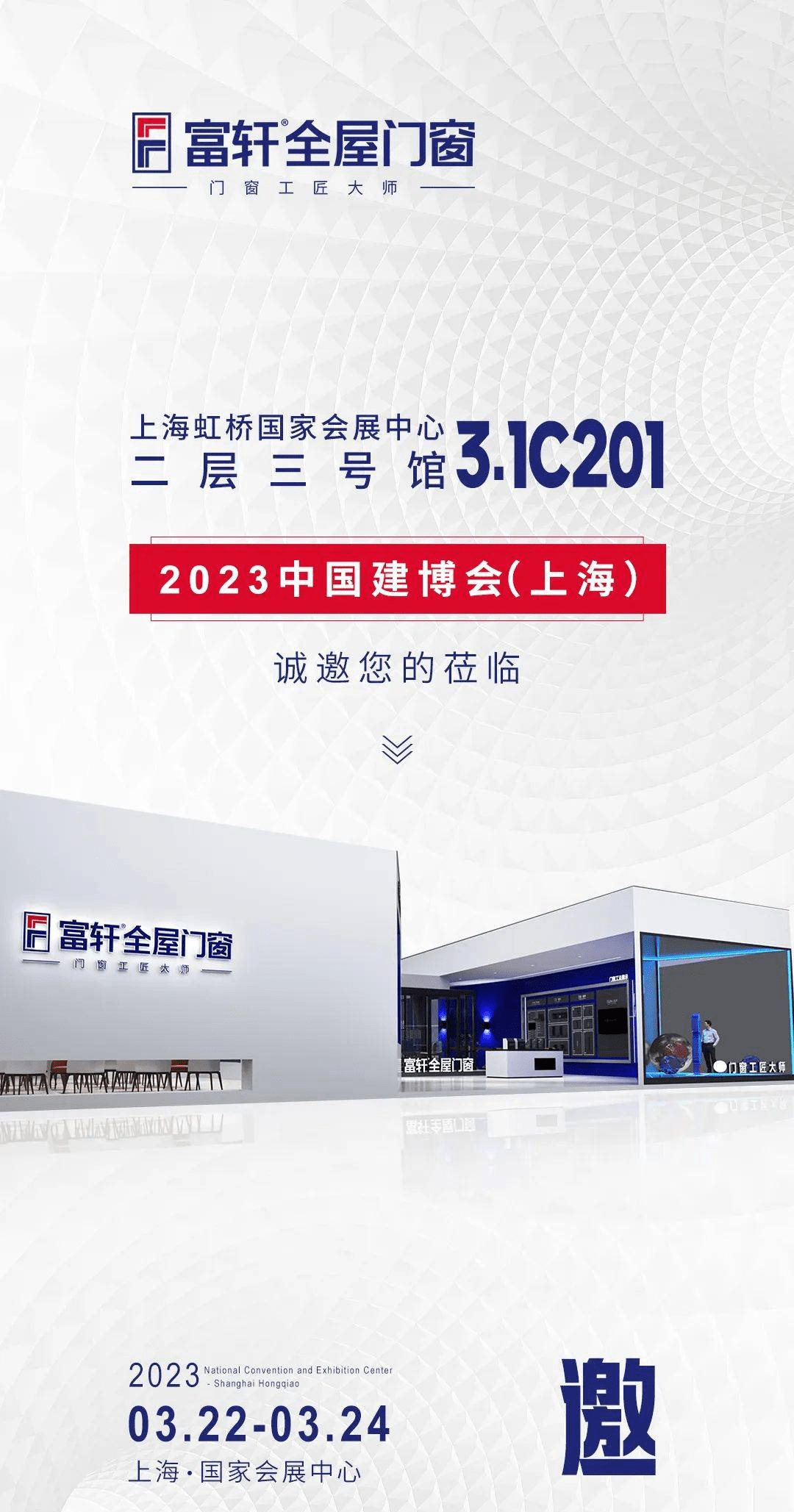 2023年3月22日-3月24日,富軒全屋門窗誠摯邀請您來上海國家會展中心二層三號館3.1C201,探尋家居新風尚,領略門窗新潮流。