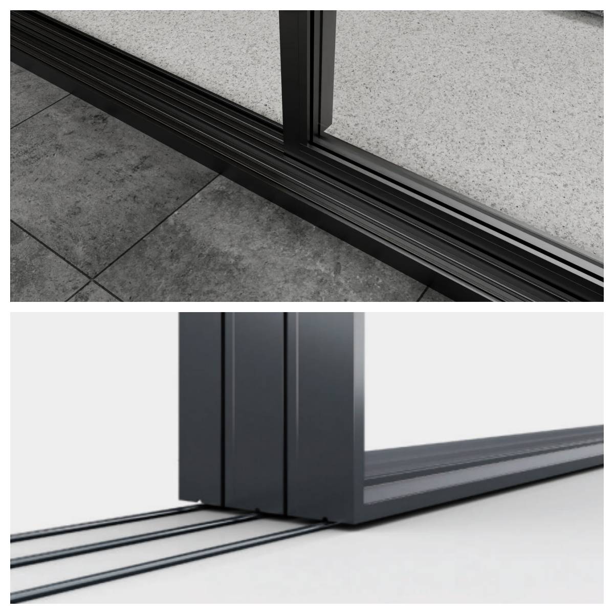 連接庭院與室內(nèi)的推拉門保溫隔熱性能是關(guān)鍵,但為了增加采光面積、滿足觀景需求,窄邊框推拉門是更多住戶的選擇,因此,型材的選擇優(yōu)先考慮斷橋鋁,壁厚建議≥1.8mm,搭配多腔體結(jié)構(gòu)和PA66優(yōu)質(zhì)隔熱條能有效阻擋熱浪和寒意進(jìn)入室內(nèi)。